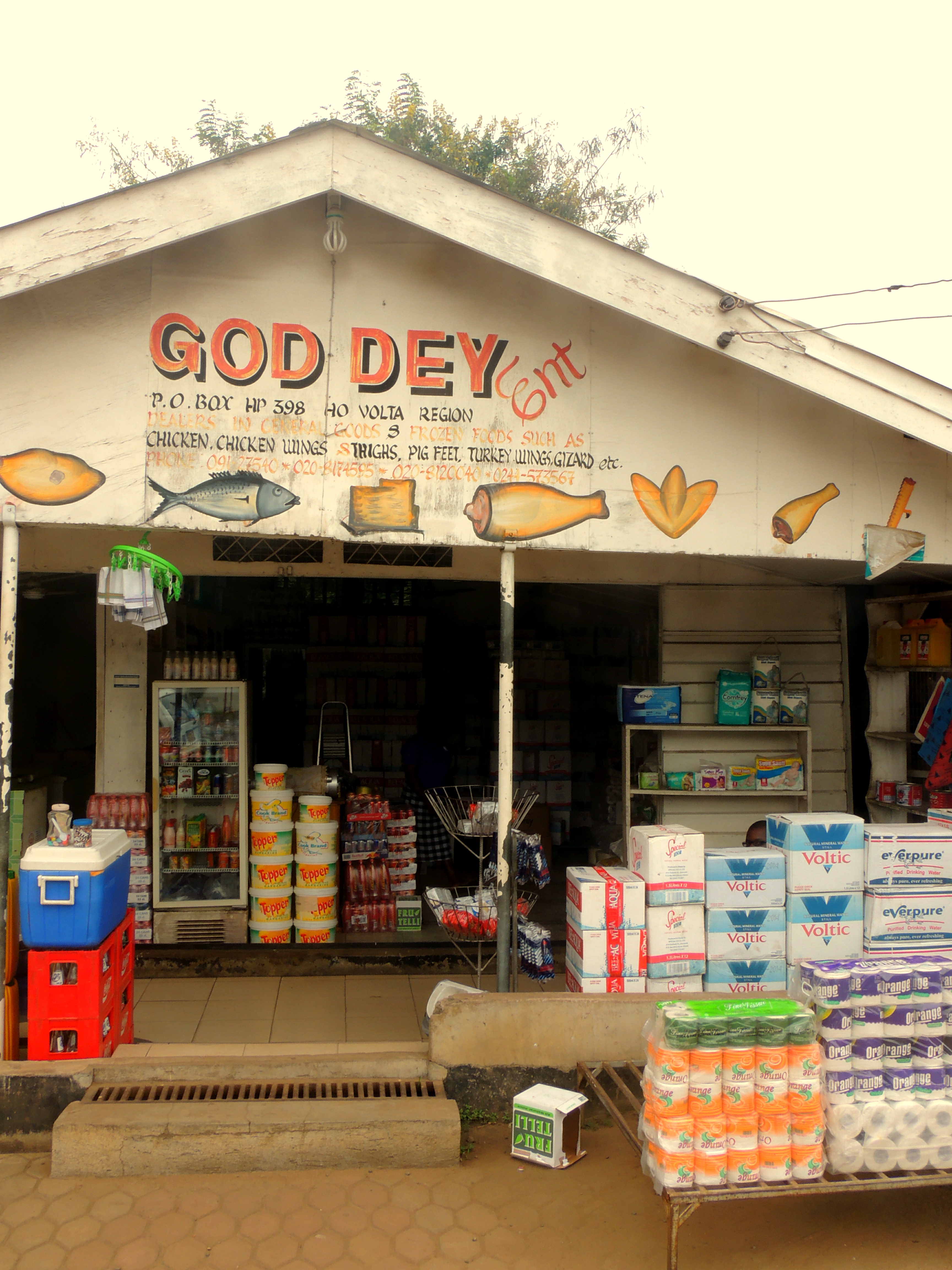 One of my favourite things about the shops in Ho was their names, they almost always having a religious connotation. Sometimes this was linked to what the person was selling, e.g. “God’s Time is the Best – Fast Food” but on others it seems to have no connection at all, “Rams Horn Enterprises”. As always in Ghana, the shops are colourfully painted and people are keen to engage with potential customers. Below are a few examples of my favourite shops in Ho. Have you shopped in Ghana? I’d love to hear about some of your experiences.