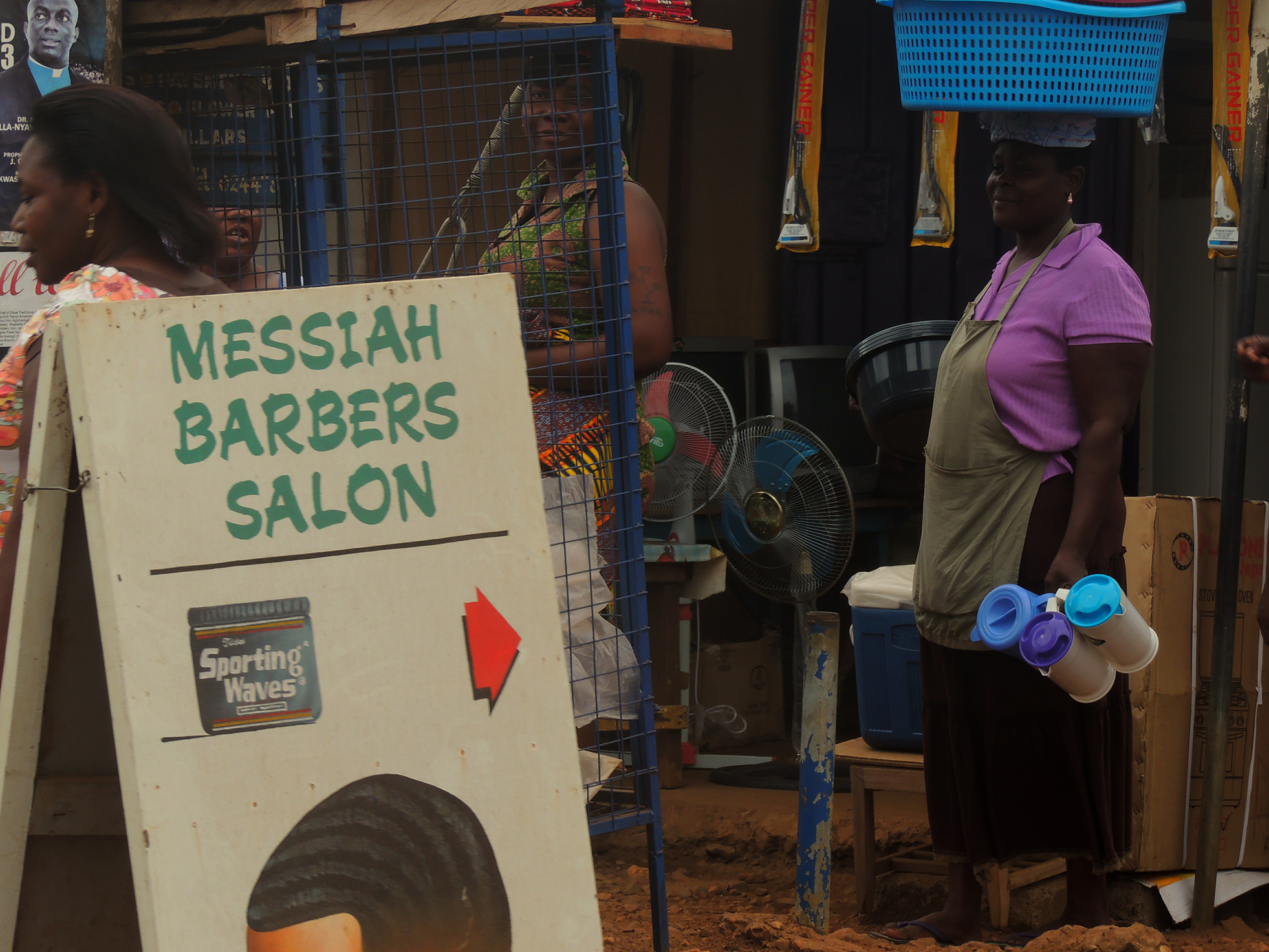 Britain was described by Napoleon as “a nation of shopkeepers”, but in 2013 I would say that this title is much more appropriate to Ghana. “Hustle” is a daily part of life for many Ghanaians and wherever your tro-tro (bus) stops there is always a number of people looking to sell water, food, footballs and many other items you might add to a shopping basket in the UK. Roads through the towns are packed with huts and the markets bustle with enterprise.