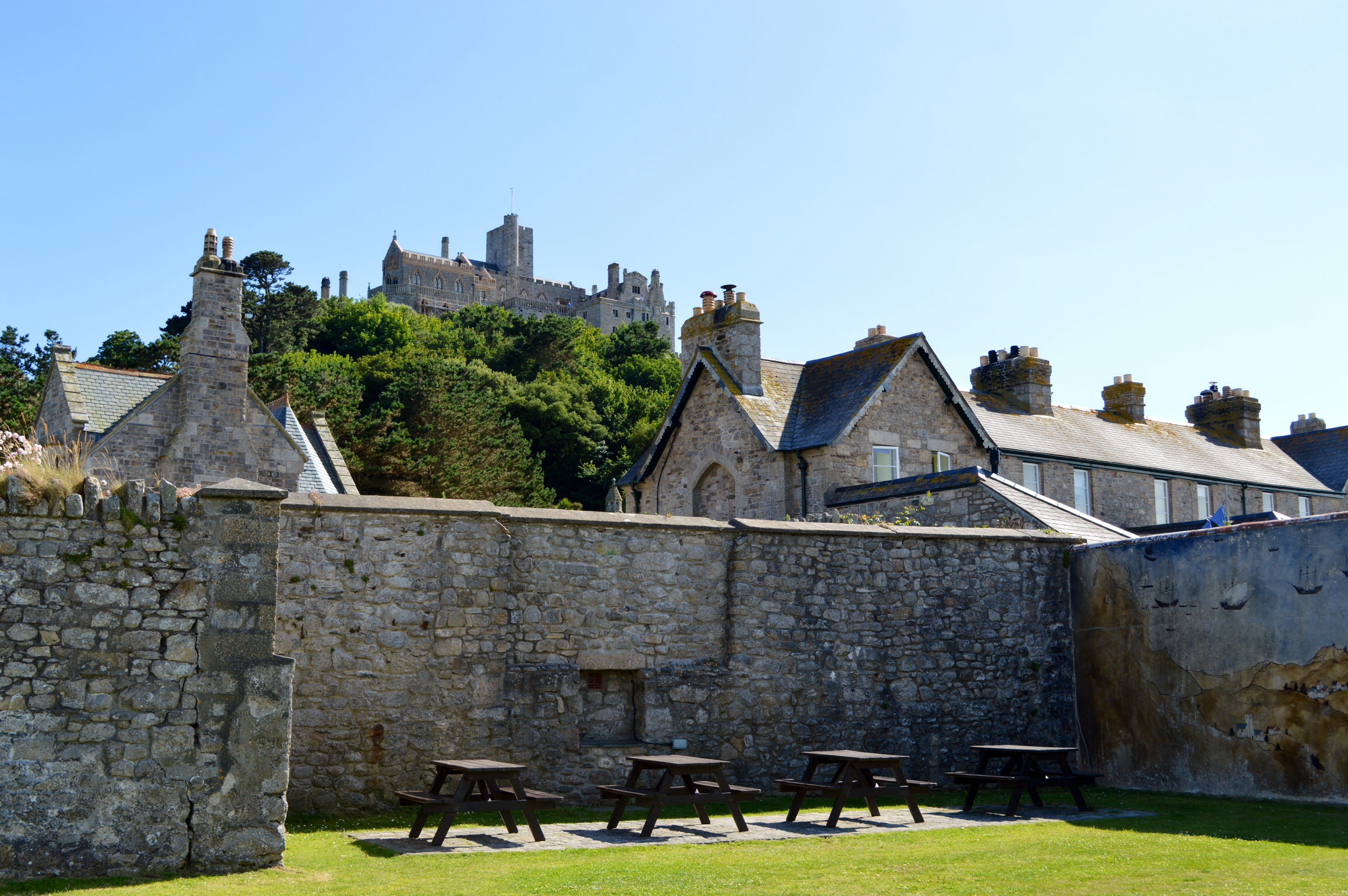 The views from the top looking back to Marazion are spectacular. Mainland Cornwall has rarely looked more idyllic.
